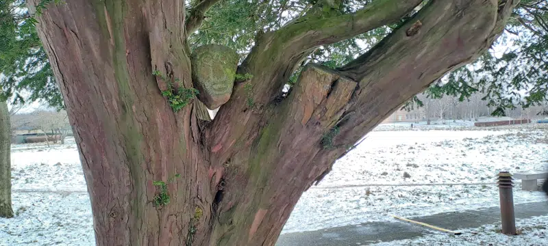 Ham der hører træet gro er en skulptur af Bror Westman fra 2001, som kunstneren har placeret i et flerstammet taxtræ. Taxen vokser meget langsomt og kan blive over 1500 år gammel, og skikkelsen i træet lytter koncentreret til denne stille vækst.