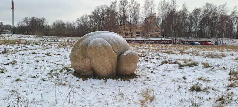 Midt på engen i Kokkedal står en skulptur, der både virker jordnær og gådefuld. Den synes at være i bevægelse, som om den langsomt vrikker sig fri af jorden. Skulpturen er skabt af billedhuggeren Claus Ørntoft, der er kendt for sine kraftfulde granitfigurer med træk fra både dyr, mytiske væsener og naturens egne former.